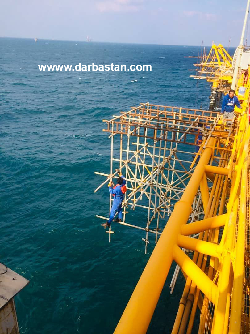 تصاویر کارگران صنعت داربست در جزیره خارک